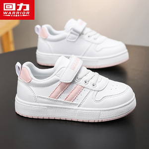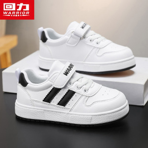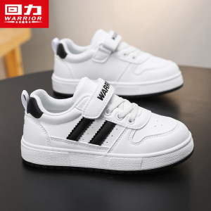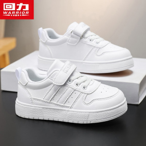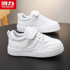 回力童鞋儿童小白鞋春秋款皮面防水中大童男女孩学生白色休闲板鞋