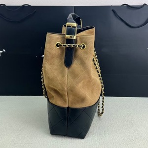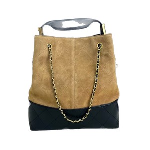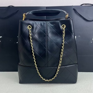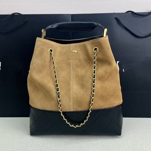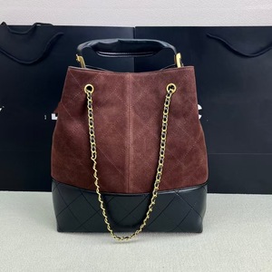 2025春季新款韩风经典款真皮菱格麂皮拼色链条流浪女水桶包