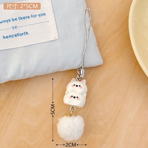 1#ホワイト - ジェンガ ファーボール 携帯電話ロープ