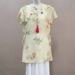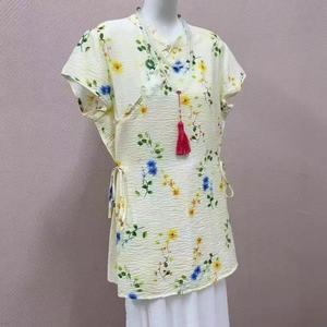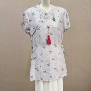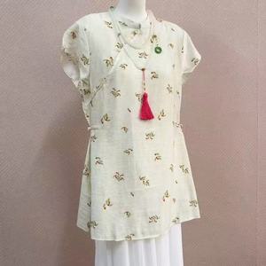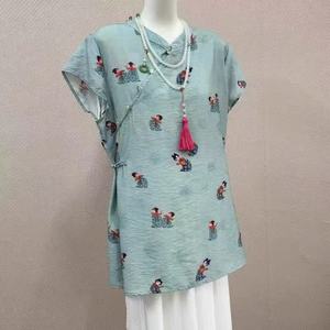 夏の新しい女性のチャイナドレススタイルの中国風のトレンディな中国風のレーヨンリネントップ女性のシャツ新しい中国風