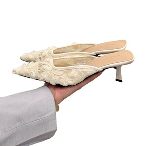 ポインテッドトゥハーフスリッパ2025夏新作アウターウェア優しいつま先空ヒール花豆レース百搭スカート女性用