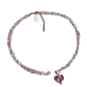 スイートクール銅象嵌ジルコンラブネックレス-ピンク