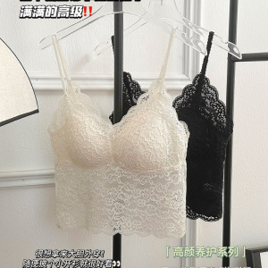 夏の新作フレンチレースブラジャー、ノンワイヤーで外でも着用可能、キャミソール風胸パッド入り、美背・背中見せデザイン