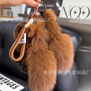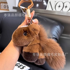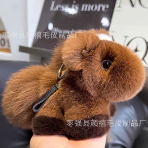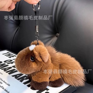 リアルレッキスラビットファーかわいいポニー車のキーホルダーペンダントぬいぐるみユニコーンバッグペンダントギフト