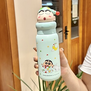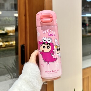 クレヨンしんちゃん共同ブランドストロー魔法瓶カップ、高見えする子供用ウォーターカップ、男の子と女の子の水筒、学校に通う学生専用