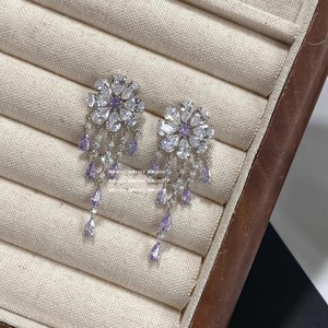 新しいスタイルのヘビーデューティーパープルウォータードロップタッセルフラワーイヤリング、ファッショナブルで軽い高級感、ハイエンドのノンホールピアス