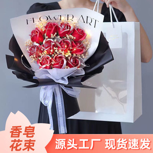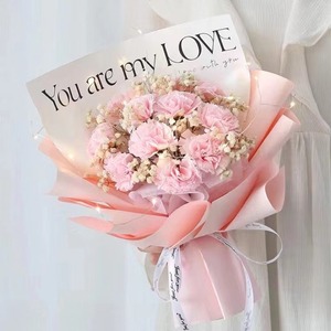 ピンクのカーネーション ソープフラワー 9 個 + カスミソウ