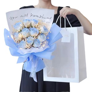 アイスブロークンブルーローズ、プリザーブドフラワー、カスミソウ、ドライフラワーブーケ、バレンタインデーの告白、ガールフレンドや親友への誕生日記念ギフト