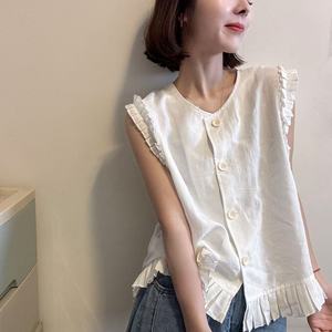 ヨーロッパのニッチな美しいノースリーブベストシャツ女性用2025夏カジュアル年齢軽減気質痩身トップ
