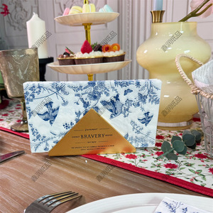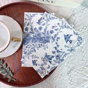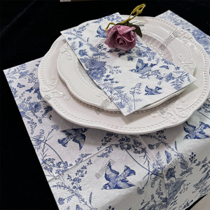 20张 出口蓝色花鸟印刷餐巾纸彩色纸巾婚礼生日茶会餐厅餐垫33x40