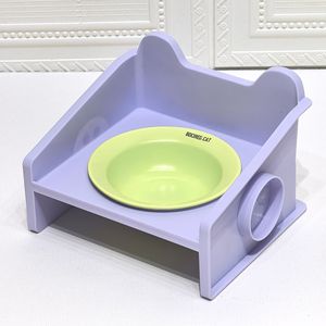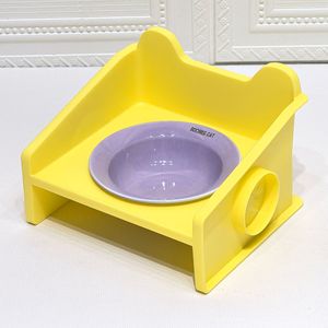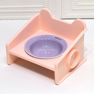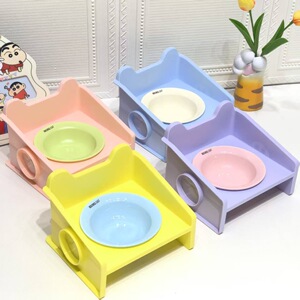 创意卡通飞碟碗带防漏碗架家用可爱宠物碗陶瓷猫碗狗碗防打翻水碗