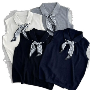 新しい韓国スタイルの多用途スリムポロネック Tシャツレディースファッションラペルスカーフニットノースリーブベストトップ