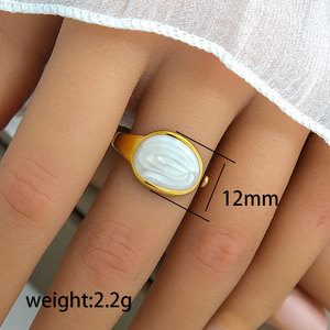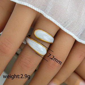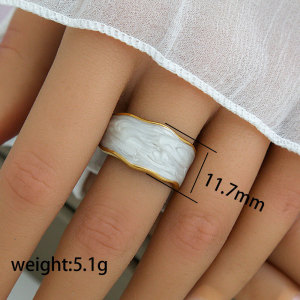 チタン鋼ジュエリーヨーロッパとアメリカの黒と白のエナメル幾何学的なラウンドステンレス鋼リングレトロなオープン非退色オイルドリップリング