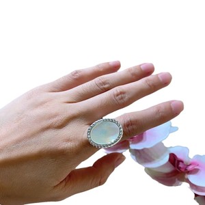 Douyinの人気の白マザーオブパール人差し指リング女性用、トレンディなコールドスタイルオープンリング、パーソナライズされたニッチファッションリング