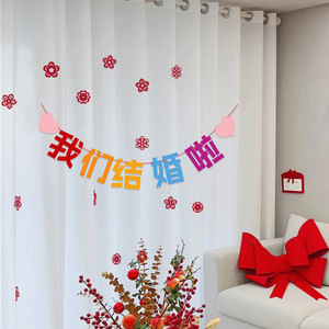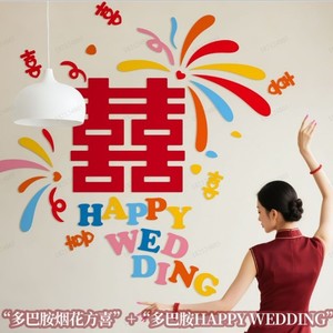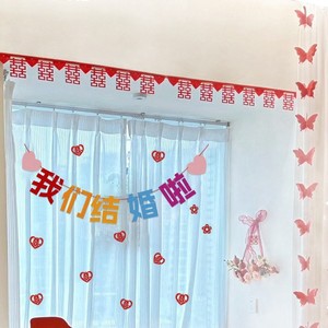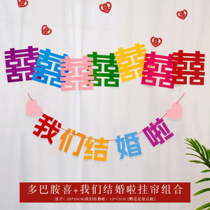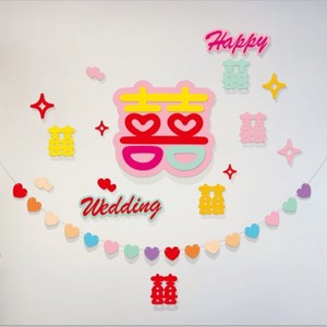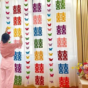 彩虹喜字婚房布置拍照场地布置结婚囍字贴衣柜新婚婚房拉旗装饰贴
