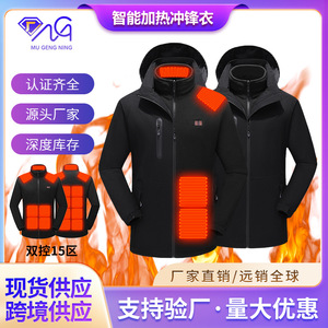 冬用インテリジェント加熱服、充電式加熱ジャケット、防風性と防水性、アウトドアスポーツ、男性と女性用の同じスタイル