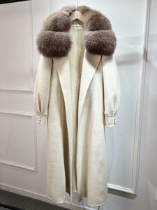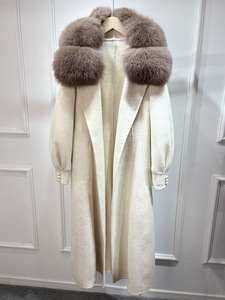 2025 東大門新両面カシミヤコート女性のロング断層毛皮の襟韓国スタイルスリムウールウールコート