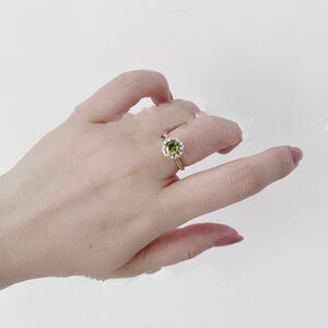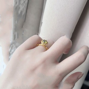 复古轻奢闪钻手捧花橄榄绿彩宝拉丝缠绕戒指时尚百搭气质叠戴指环