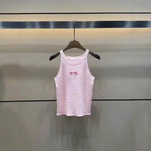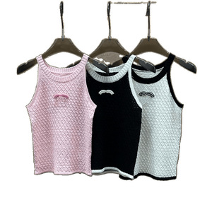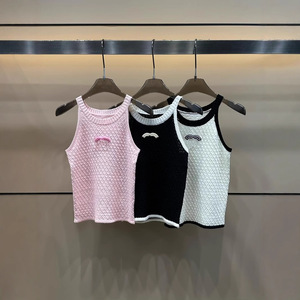 2025 新しい夏の Xiangjia 立体ロゴコントラストカラーニットノースリーブプルオーバーベストルーズで多用途な女性のトップ