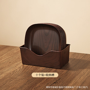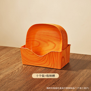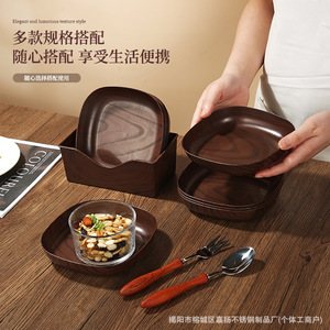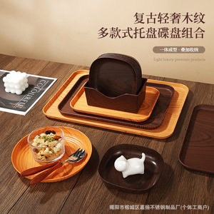 国境を越えたクリエイティブな模造木目調プラスチックトレイ、ディナープレート、骨吐き皿セット、家庭用日本茶トレイ、フルーツトレイ、ホテル商業用