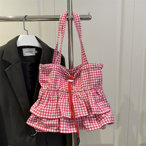 西洋スタイルのファッショナブルでかわいいカレッジスタイルのバッグ 2025 新しい韓国語版 ins レースチェック柄トートショルダーバッグ女性用