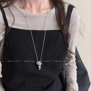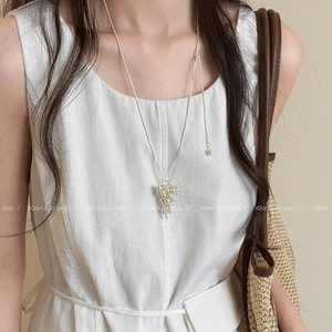 女性用のエレガントなロングタッセルネックレス、夏のニッチデザイン、ハイエンドのセーターチェーン、ブドウのつる鎖骨チェーンペンダント