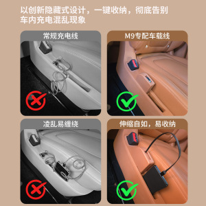 問界M9車載シート急速充電器拡張ドック伸縮式66W急速充電データケーブル2025年版(華為新製品)