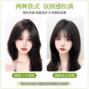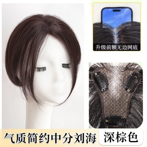 女性用ヘアピース、手編み高頭頂増毛、白髪隠し、人毛風ミドル分け前髪ヘアピース