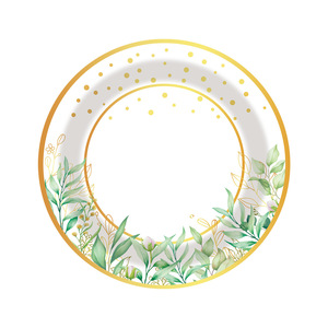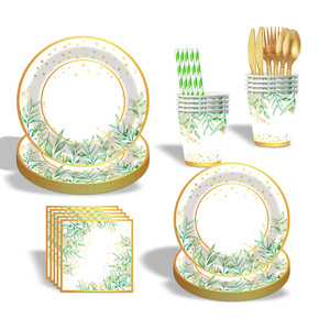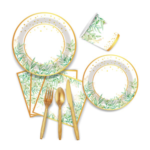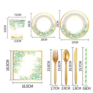 亚马逊烫金植物主题派对聚会用品套装一次性纸杯纸盘纸巾餐具批发