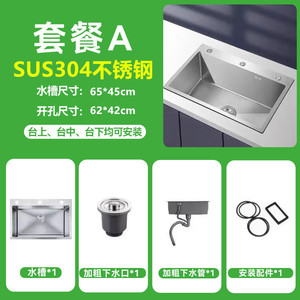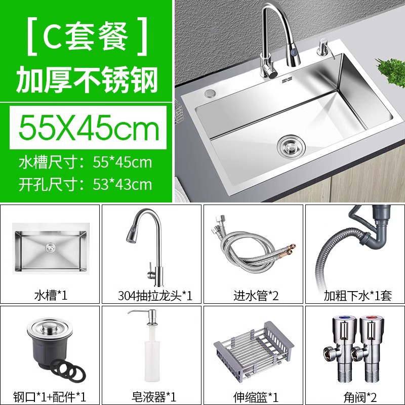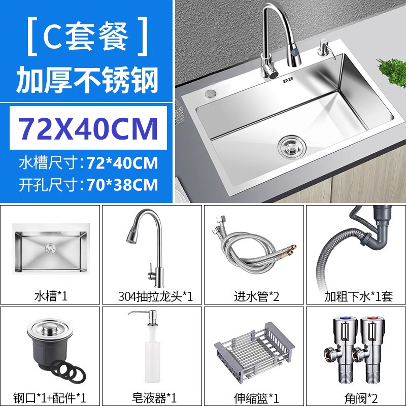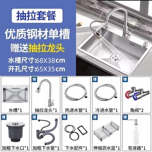 厨房304不锈钢手工拉丝加厚单槽水槽套餐大单槽洗菜盆洗碗池