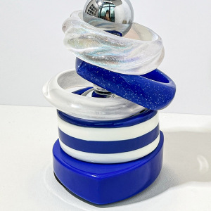 国境を越えたヨーロッパとアメリカのファッションのハイエンドの青と白の積み重ねオープンハイエンド樹脂ブレスレット工場直販