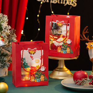 クリスマスギフトバッグ 2025 クリスマスギフト包装袋ウィンドウハイエンドアップルギフトバッグ空箱ハンドバッグ