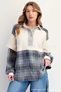 Amazon 25秋の新作クロスボーダーヨーロッパとアメリカの服プリントチェック柄スプライシングプルオーバースウェットシャツ長袖ルーズトップ