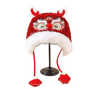 新国风龙头帽子宝宝周岁刺绣虎头帽冬季幼儿童小孩加绒新年冬款帽