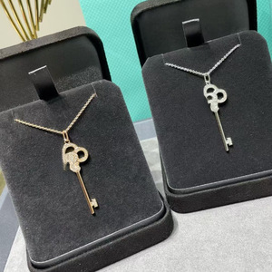 t家钥匙项链女纯银18k玫瑰金皇冠锁骨链心冠吊坠鸢尾花毛衣链秋冬