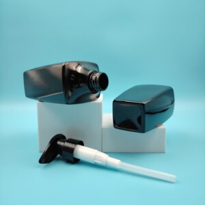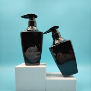工場でカスタマイズされた PET 400 ミリリットル特殊形状の厚みのあるケアボトルホテルのハイエンドシャンプーシャワージェル詰め替えボトル
