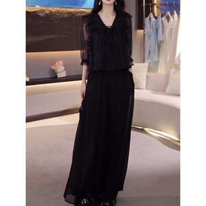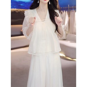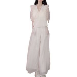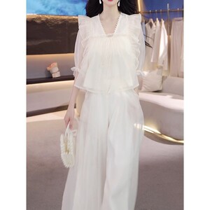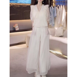 気質ファッションスーツ 2025 夏の新スタイルスーパーフェアリー年齢軽減デザイントップス痩身ワイドレッグパンツ