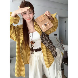 小紅書で人気の赤い格子柄シャツジャケット、女性用、春秋薄手、レトロでゆったりとした長袖トップス