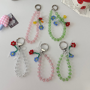ins风水晶花朵链条奢华彩色串珠手机壳链挂饰汽车钥匙包包挂绳