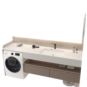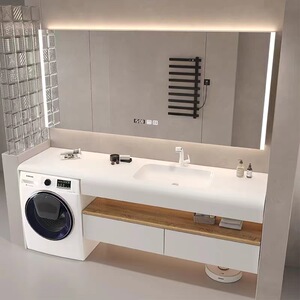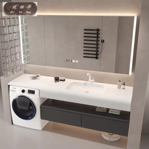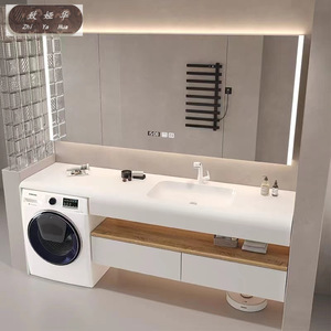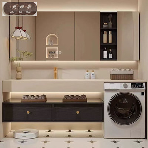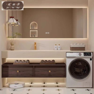 無垢材洗面台、コーリアンスレート二層洗濯機キャビネット、バスルームキャビネット、バルコニーコンパニオン一体型キャビネットの組み合わせ