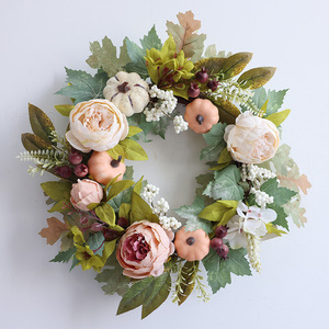 アマゾン感謝祭ガーランド収穫祭カエデの葉カボチャ松ぼっくりガーランド秋のベリードアハンギング牡丹の花ガーランド