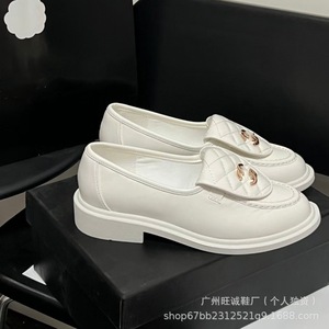 Xiaoxiangfeng ダイヤモンド折りたたみローファー、ローヒールの小さな革靴、ラウンドトゥのシープスキンのスリッポン、メタルバックルの女性用シングルシューズ