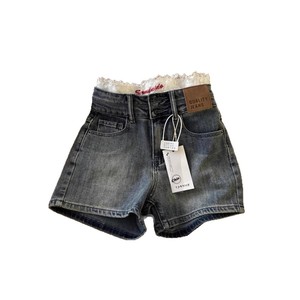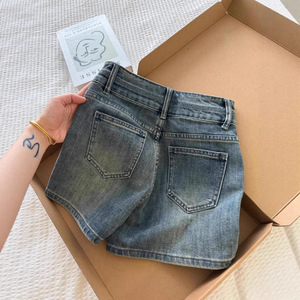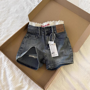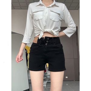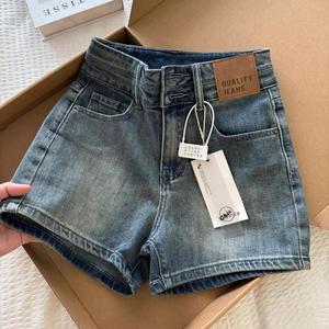 蓝色设计感双扣高腰不露屁股牛仔短裤女2025新款夏季包臀三分热裤