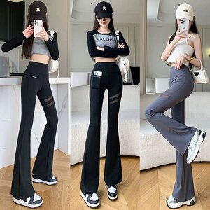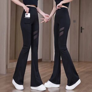 2025 夏ポケットブーツカットパンツ女性の薄いメッシュハイウエスト弾性ヒップリフティング痩身サメバービーレギンス