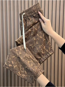 涼しいパンツ、アイスシルクパンツ、女性用夏用薄手花柄パンツ、女性用ゆったりカジュアルパンツ、9点レギンス、ハーレムパンツ、ブルマ