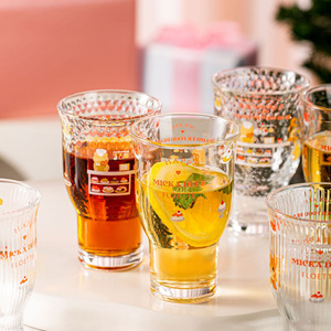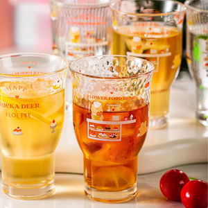 【9時9発4個】かわいいクマの広口ガラス ジュースカップ アイス アメリカーノカップ ビールカップ ドリンク
