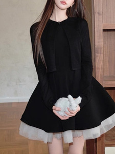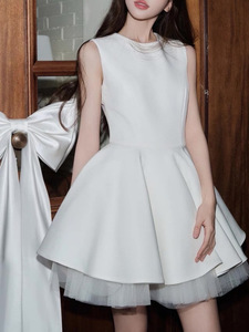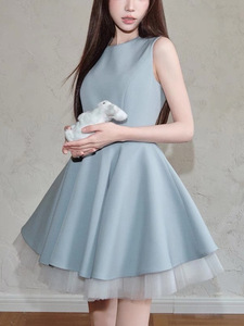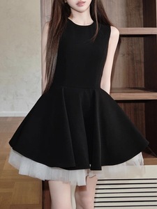 avenement/コントラストカラーメッシュステッチノースリーブフレンチヘップバーンワンピース気質ウエストチュチュスカートバレエスカート