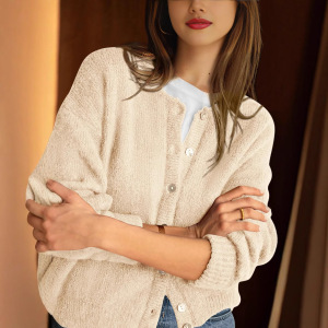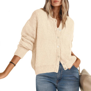 ヨーロッパとアメリカのクロスボーダー 2025 秋冬長袖ラウンドネックボタンダウンレディースセーターファスナー厚手の棒編みカーディガンファッション