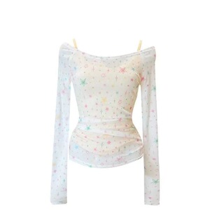 夏アメリカンスイートガールインスタイルデザインスタープリント薄手スリム長袖キャミソールトップトレンディ