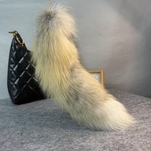 ファッションレインボー本物の毛皮のキツネの尻尾ペンダントコミコンコスパフォーマンス小道具ナチュラルファーテールキーホルダー